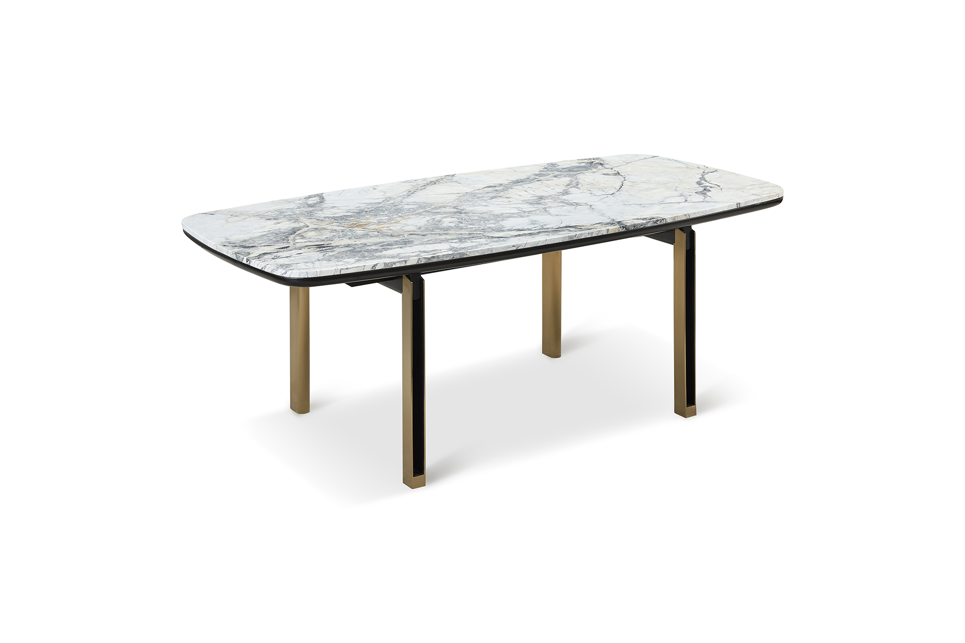 "底架:不锈钢香槟金拉丝+黑漆 面板:天然寒江雪大理石"