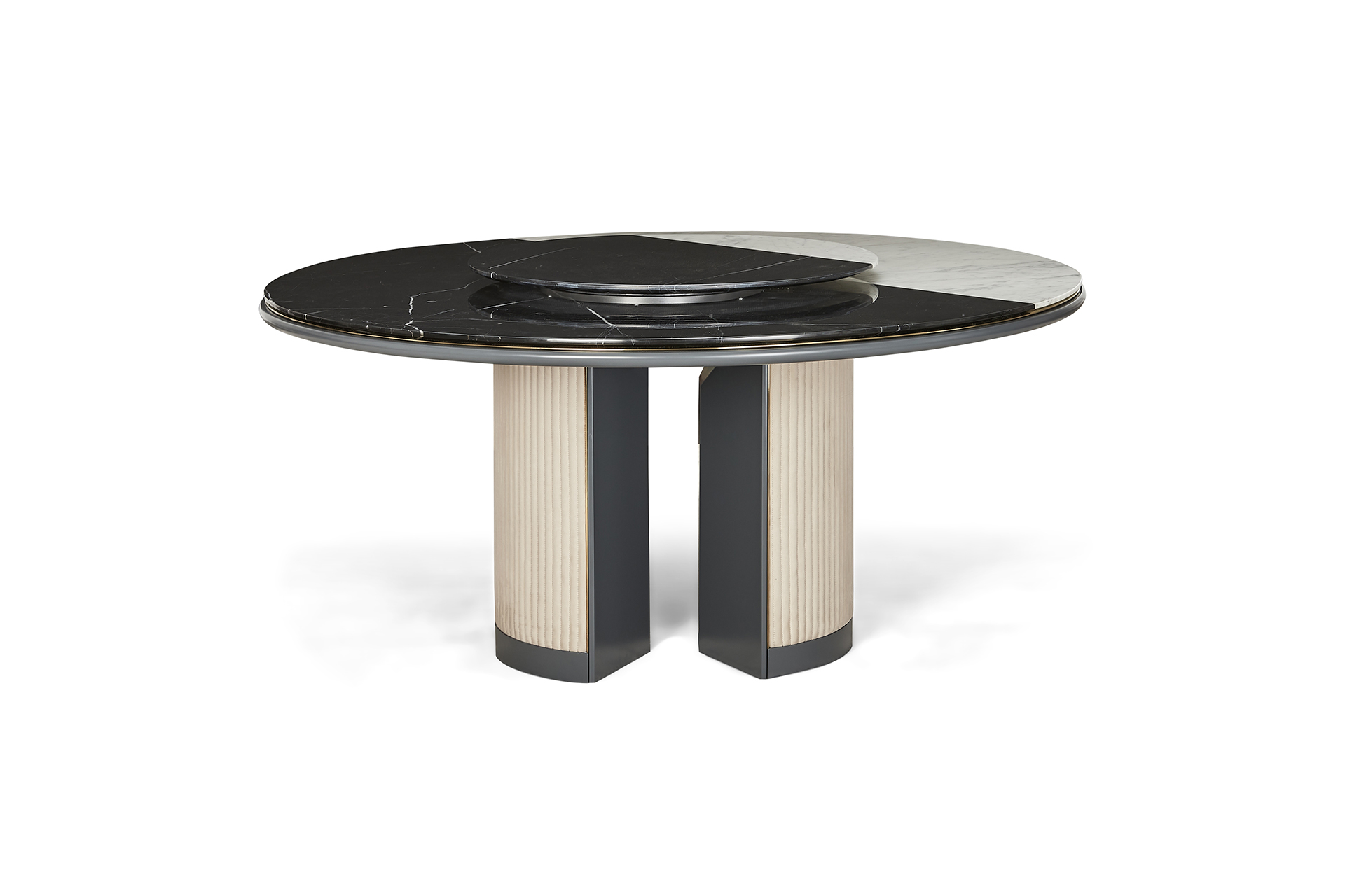 材质: 底座:不锈钢镜面香槟金+亮光烤漆+硬包 面板:天然中花白拼黑白根大理石 面料:磨砂布:F706-11